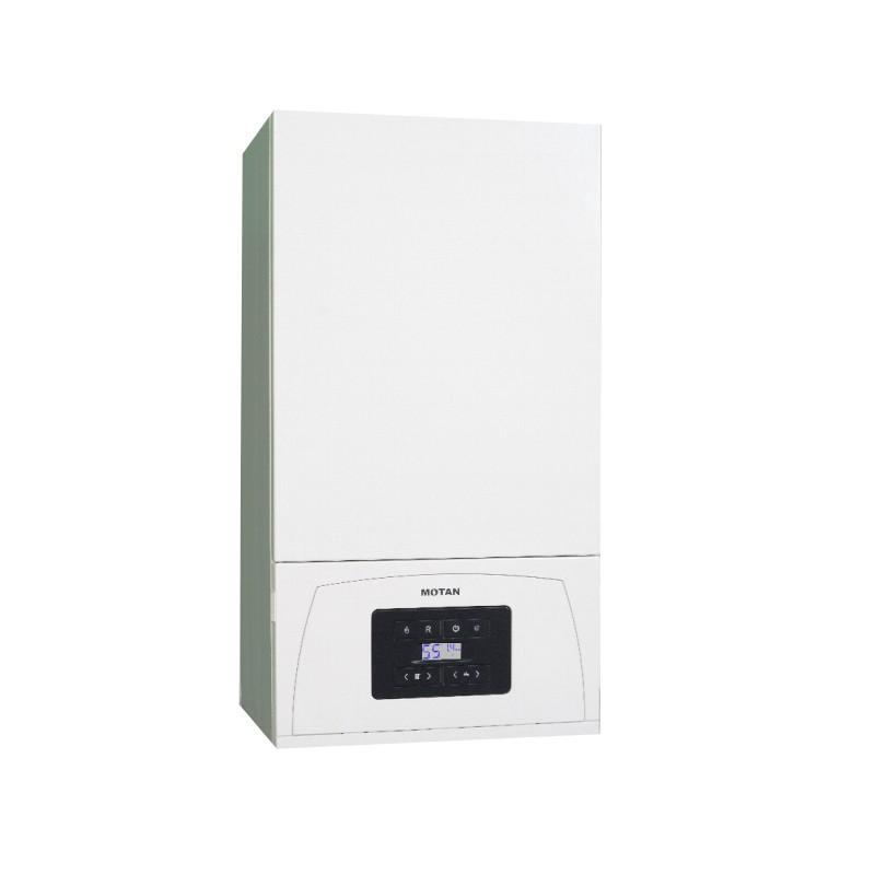 Centrala termica in condensare Motan Condens 050 24 face parte din gama centralelor termice cu randament ridicat si constant, se utilizeaza pentru incalzirea spatiilor si pentru preparare apa calda menajera in regim instant, are o putere termica de 24 kW, tiraj fortat, se amplaseaza mural si se incadreaza in clasa de eficienta 4 ****.