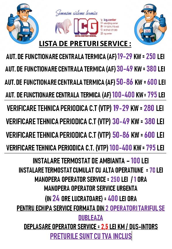 Firma noastră face puneri în funcțiune, service și intervenții la echipamentele vândute de ICG, instalate în Iași și în zona metropolitană, în limita a 25 km.